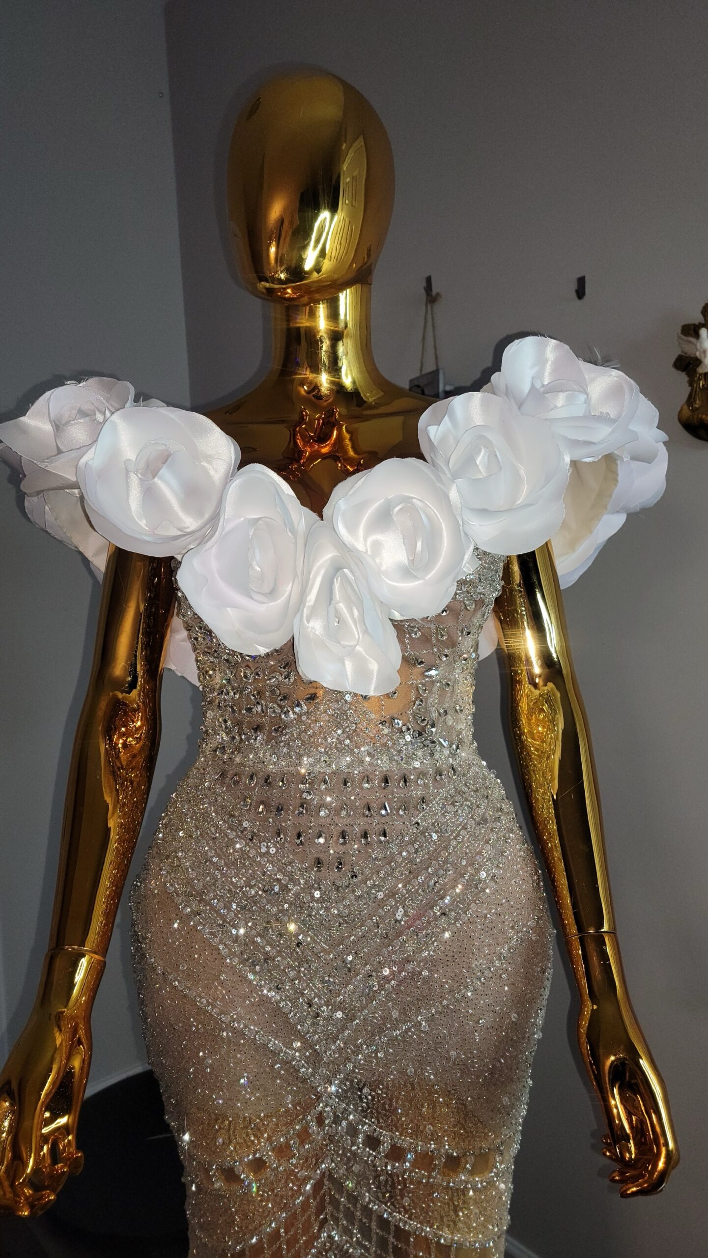 Luxury beaded Corset dress with detachable beaded bow