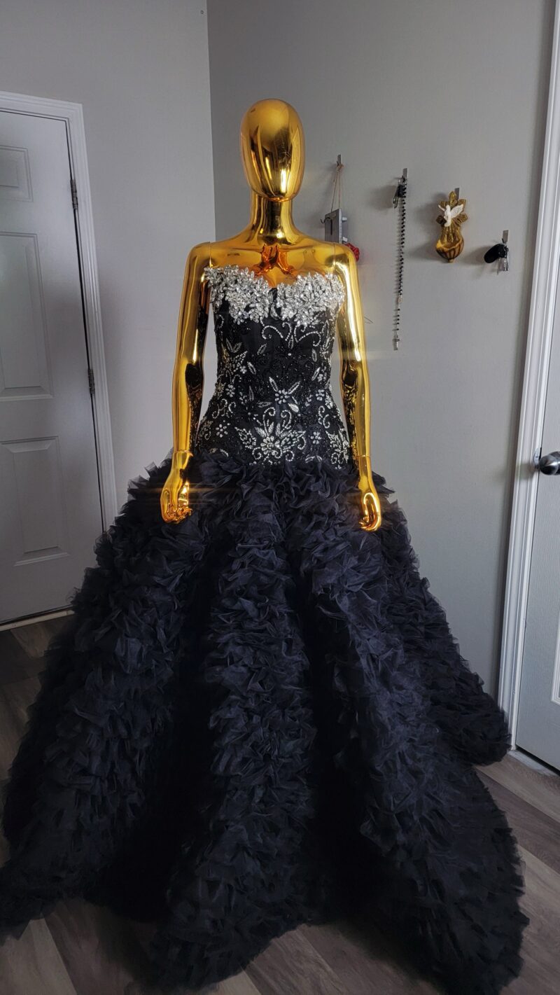 Luxury hand beaded corset dress top with full princess tulle bottom from waist.